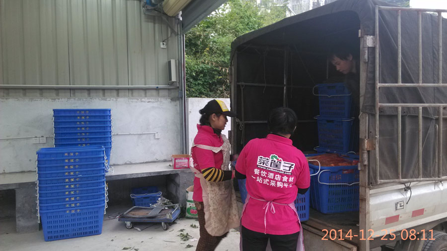 菜筐子網(wǎng)為了進一步研究農(nóng)副產(chǎn)品配送行業(yè)運行規(guī)律,在??讵毩⒃O(shè)計建立了分撿中心!分揀中心位于振發(fā)路瓊山區(qū)公益市場內(nèi)。